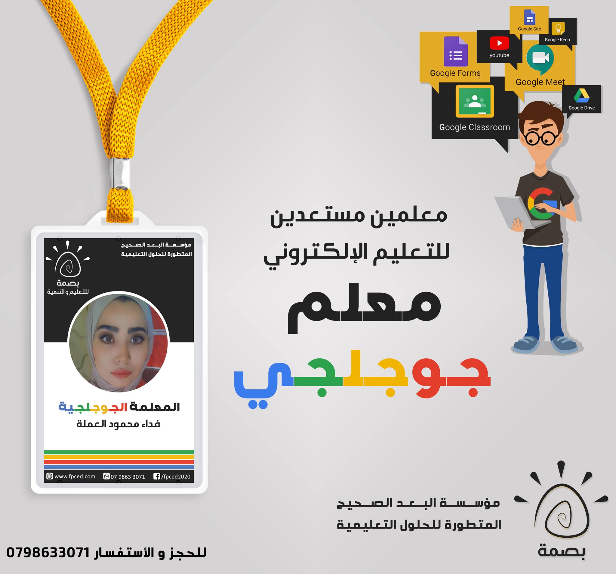 خلال جائحة كورونا عام 2020 وتحول العملية التعليمية بشكل مفاجئ من التعليم الوجاهي إلى التعليم الإلكتروني عن بعد ، ظهرت الحاجة الماسة لتدريب وتأهيل الكوادر التعليمية والتدريسية على المهارات الرقمية لمواكبة ثورة التعليم الإلكتروني .. ومن هنا قامت بصمة للتعليم والتنمية بتدريب وتأهيل أكثر من (1000) معلم على مهارات التعليم الرقمي من خلال تطبيقات شركة “Google” المجانية كعمل وطني تطوعي.